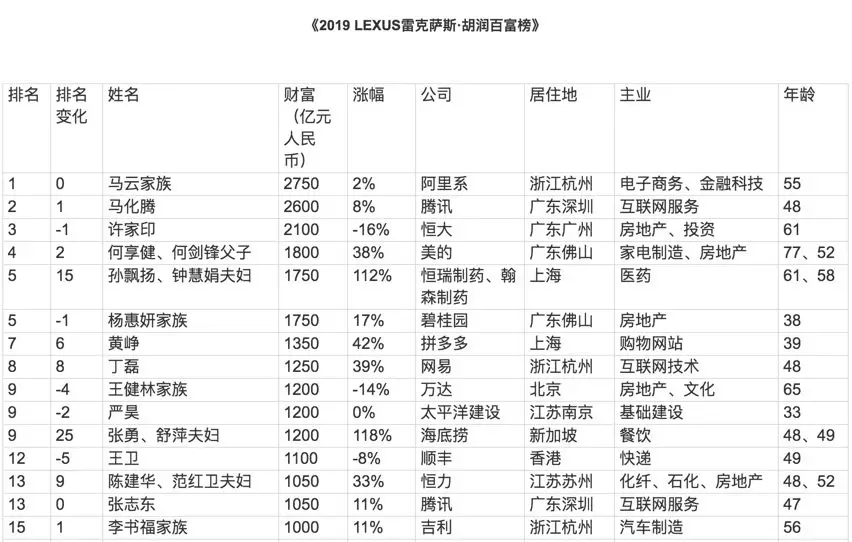 今年共有1819位企業(yè)家財富超過20億