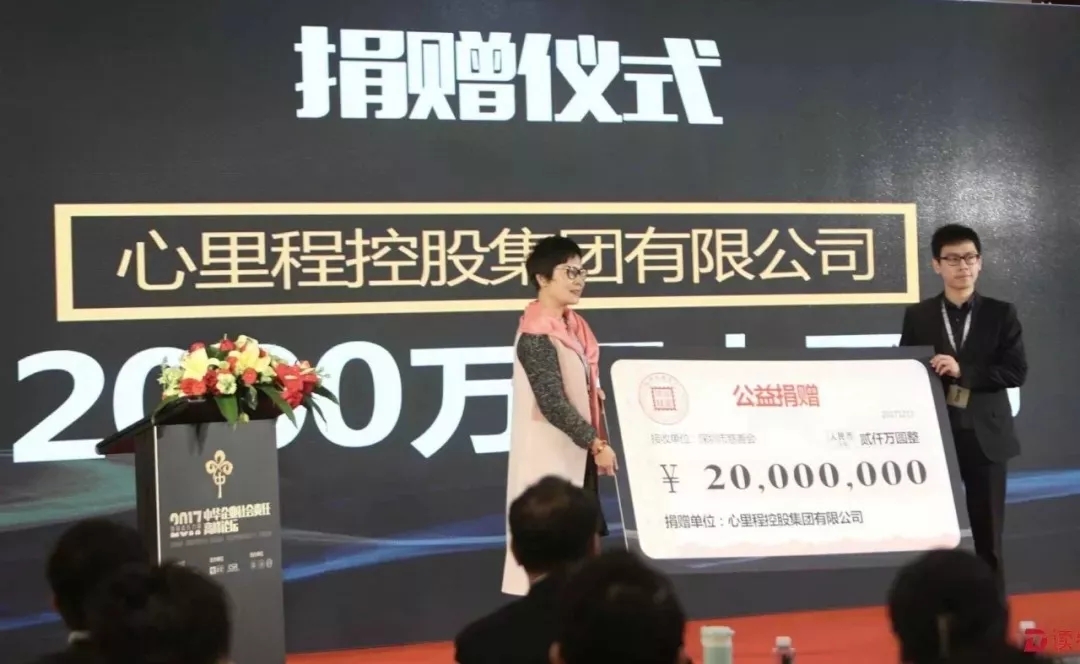 ◇2017年12月17日,心里程控股集團(tuán)有限公司應(yīng)邀出席“2017中華企業(yè)社會責(zé)任高峰論壇”,并向深圳市慈善會捐贈2000萬元。