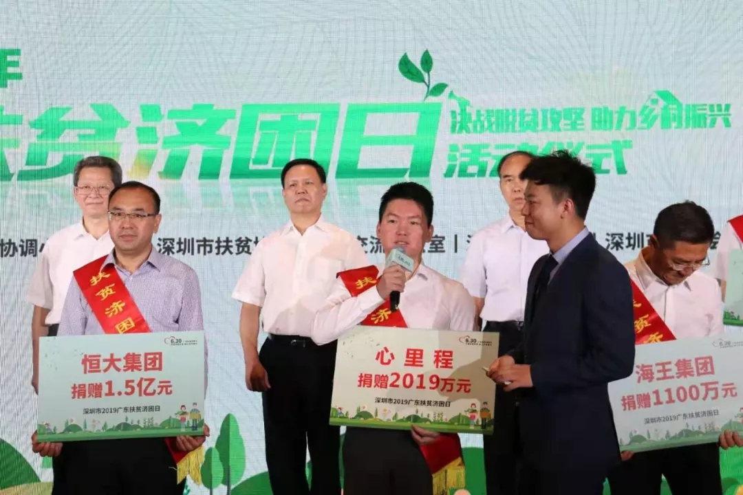 ◇2019年6月30日,以“決戰(zhàn)脫貧攻堅(jiān),助力鄉(xiāng)村振興”為主題的深圳市2019年“廣東扶貧濟(jì)困日”活動在深圳市民中心隆重舉行,心里程控股集團(tuán)董事長彭國遠(yuǎn)應(yīng)邀出席啟動儀式,并現(xiàn)場舉牌認(rèn)捐善款2019萬元。