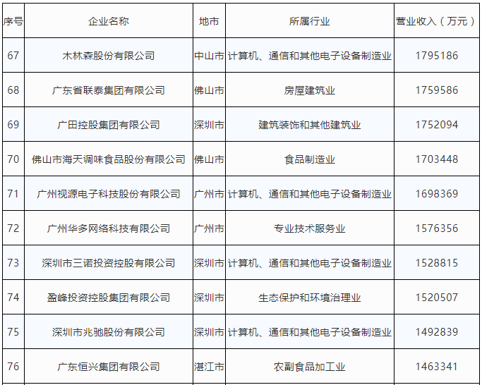 | 序號(hào) | 企業(yè)名稱 | 地市 | 所屬行業(yè) | 營(yíng)業(yè)收入(萬(wàn)元) |