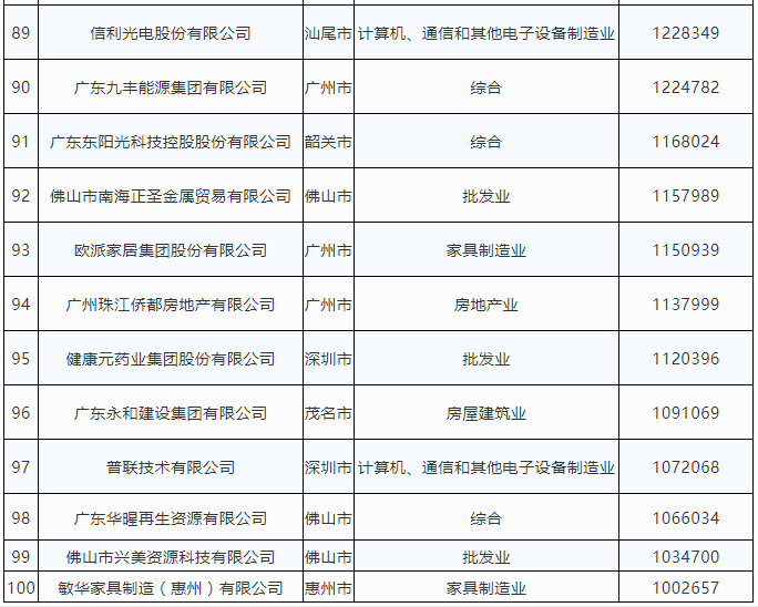 ?2019廣東省百?gòu)?qiáng)民營(yíng)企業(yè)榜單