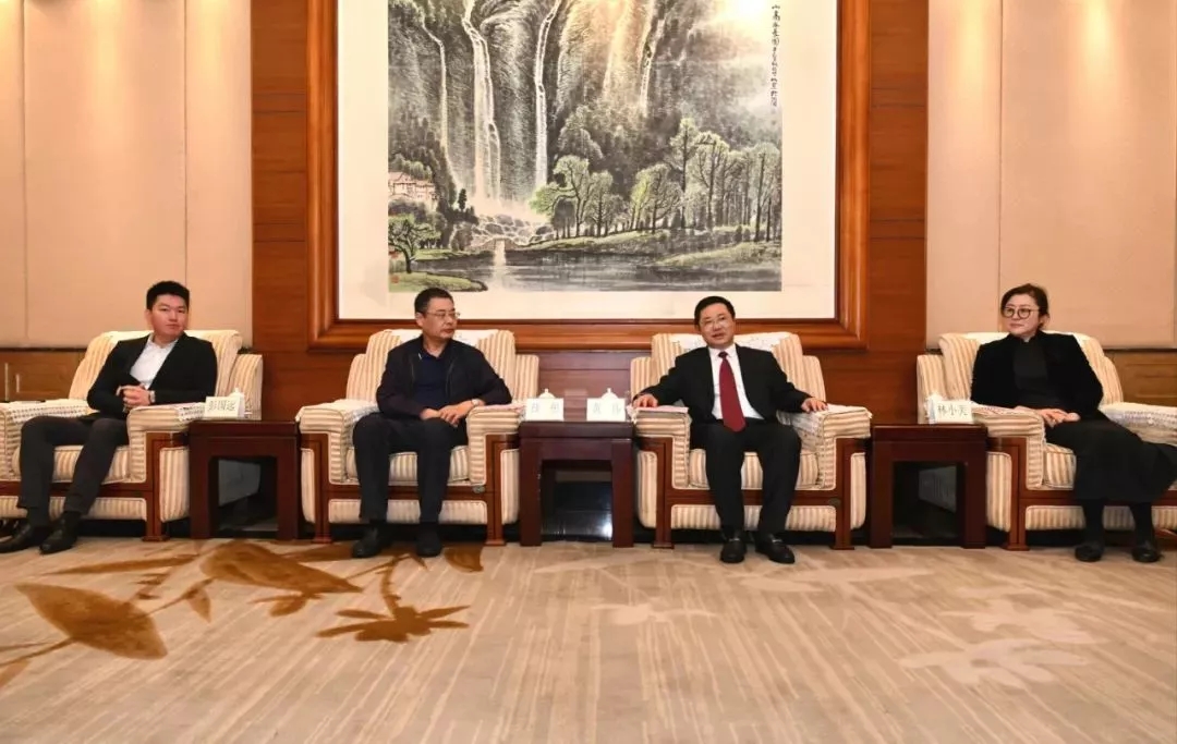 會前,彭國遠(yuǎn)董事長(左一)受到黃偉副書記等領(lǐng)導(dǎo)親切接見并進(jìn)行了座談交流