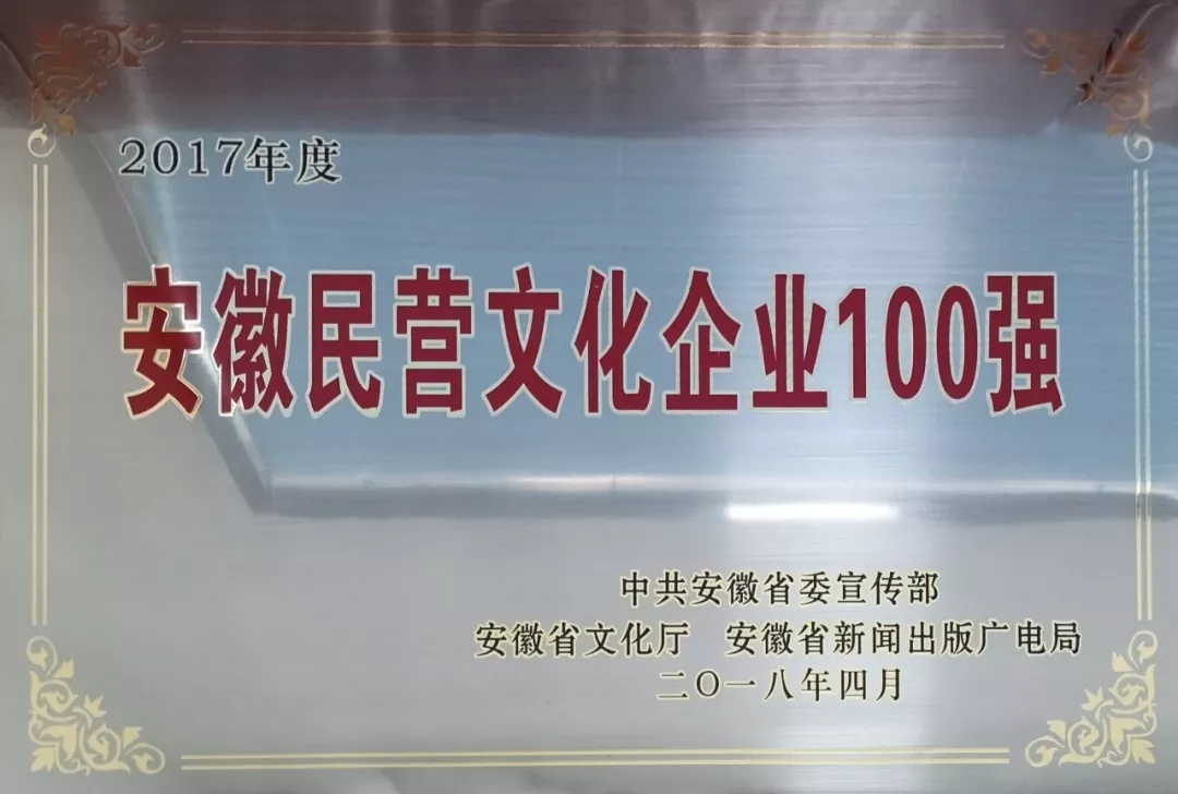 ●2017年,安徽心里程科技有限公司成功入選“2017年度安徽民營文化企業(yè)100強(qiáng)”。
