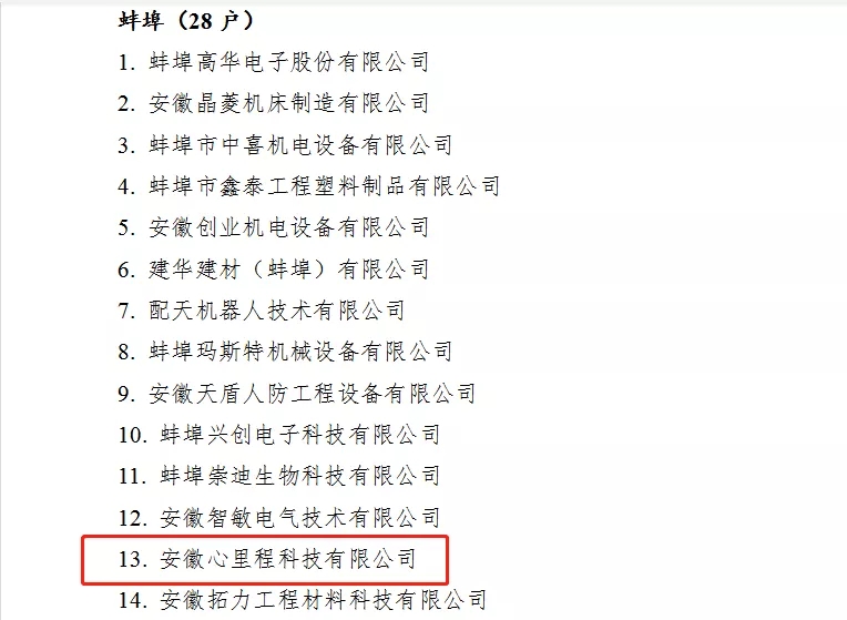 2019年度安徽省“專精特新”中小企業(yè)名單