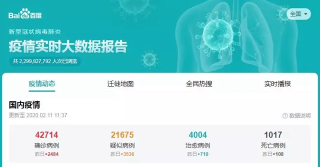 新型冠狀病毒感染肺炎疫情,牽動(dòng)著全國人民的心。1月27日,習(xí)主席作出重要指示,要求各級(jí)黨組織和廣大黨員干部團(tuán)結(jié)帶領(lǐng)廣大人民群眾堅(jiān)決貫徹落實(shí)黨中央決策部署,緊緊依靠人民群眾堅(jiān)決打贏疫情防控阻擊戰(zhàn)。雖然全國人民都已經(jīng)發(fā)動(dòng)起來,積極參與到疫情防控中。但百度“疫情實(shí)時(shí)大數(shù)據(jù)報(bào)告”上不斷增長的疫情動(dòng)態(tài)數(shù)據(jù)顯示,當(dāng)前的疫情防控形勢依然十分嚴(yán)峻。截至2020年2月11日11:37,全國確診病例達(dá)到42714人,疑似病例21675人,治愈病例4004人,死亡病例1017人。