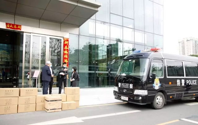 汕尾市派車于心里程控股集團(tuán)總部接收3萬余件醫(yī)用物品捐贈(zèng)