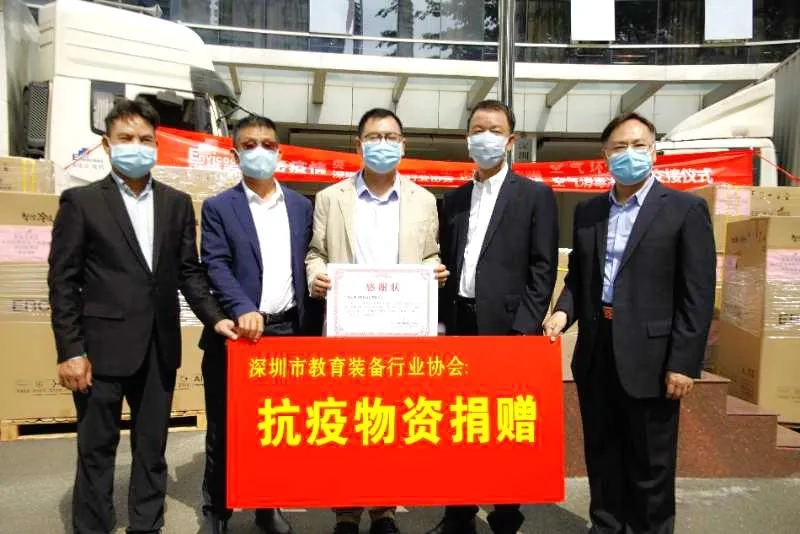 這次助力教育系統(tǒng)抗疫的捐贈活動獲得了深圳市教育裝備行業(yè)協(xié)會內眾多愛心會員企業(yè)、個人的積極響應,深圳市教育裝備行業(yè)協(xié)會會長、心里程控股集團總裁彭錦環(huán)代表協(xié)會為積極參與捐贈活動的愛心企業(yè)、個人頒發(fā)了感謝狀。