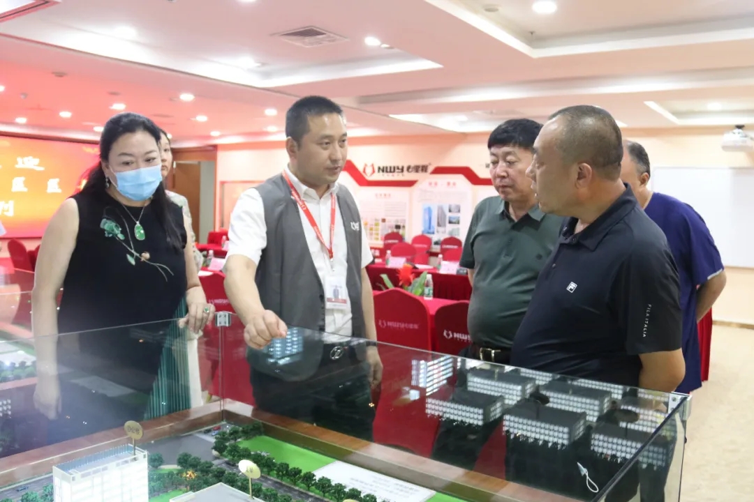 彭俏奇董事長(右一)陪同靳洪利區(qū)長(左二)參觀心里程